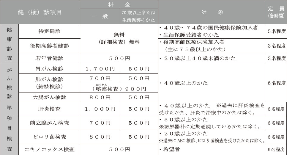 ※16日(日)は胃・肺・大腸がん検診のみです。