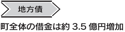 地方債は、自治体の借金のことです。令和6年度は、水道事業会計の地方債残高が大幅に増加したことにより、町全体の地方債の残高が約3.5億円増加しました。