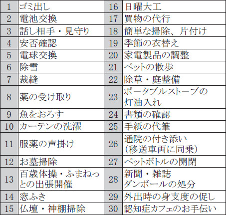 町の養成講座を通じて登録したかたがたが、日常生活の中での「ちょっとした困りごと」を手助けしています。支援が必要なかたの相談内容に応じて、サポーターの活動を生活支援コーディネーターがマッチングしています。
