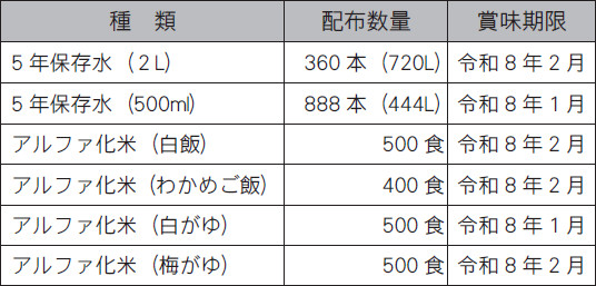 ■配布する備蓄食料・飲料水の数量及び賞味期限
