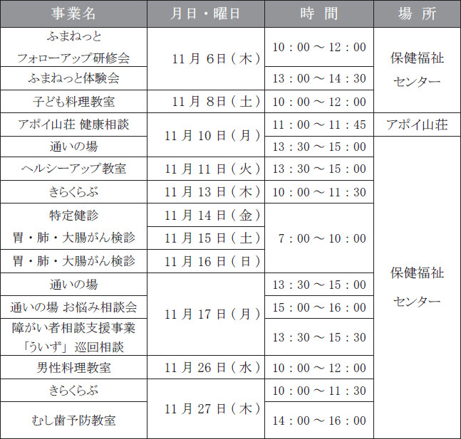 ■11月きらく事業カレンダー