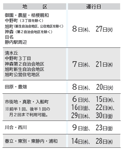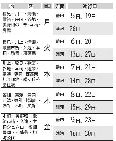 ◆温泉バス運行表(静内地区)