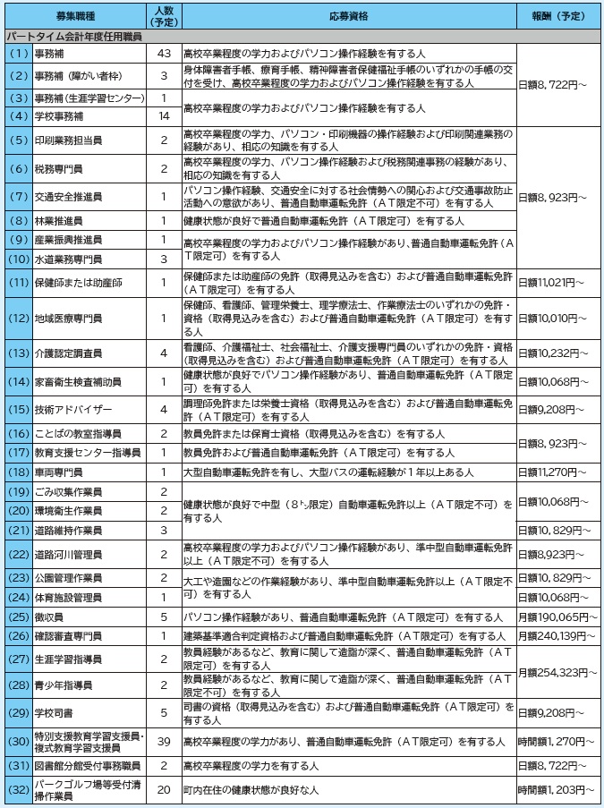 町は、令和8年度の会計年度任用職員を募集しています。過去に臨時職員などで勤務した経験がある人も応募できます。なお、併願は一つまで可能です。