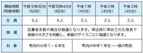 教育委員会は、バイオリンの演奏をしたことがない、初心者の人を対象に体験講座を開催します。