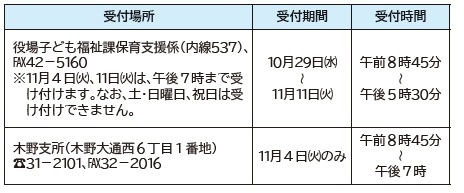問合先:役場子ども福祉課保育支援係