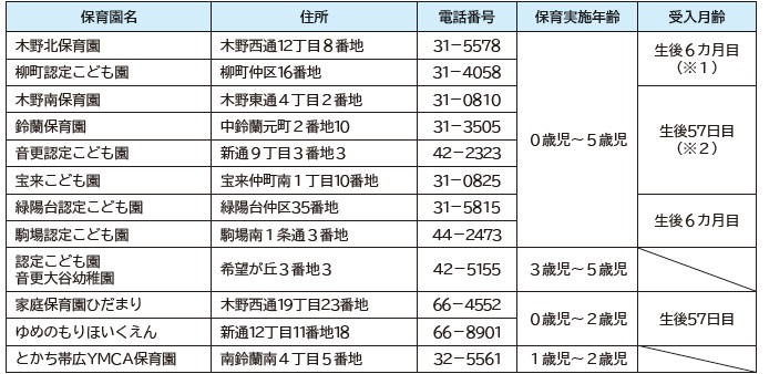 ※1 令和8年4月1日時点で生後6カ月目(令和7年10月1日以前に生まれた人)以降の乳児を受け入れます。