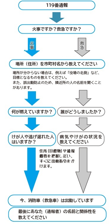 消防庁は、消防に対する正しい理解と認識を深めるとともに、防火意識を高め、地域ぐるみの防災体制の確立を目的として、11月9日を「119番の日」としています。いざというときのために、119番通報のかけ方を確認しましょう。