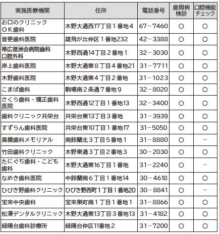 ※後期高齢者医療制度加入者で希望する人は口腔機能(かむ力・飲み込む力など)チェックを行います。