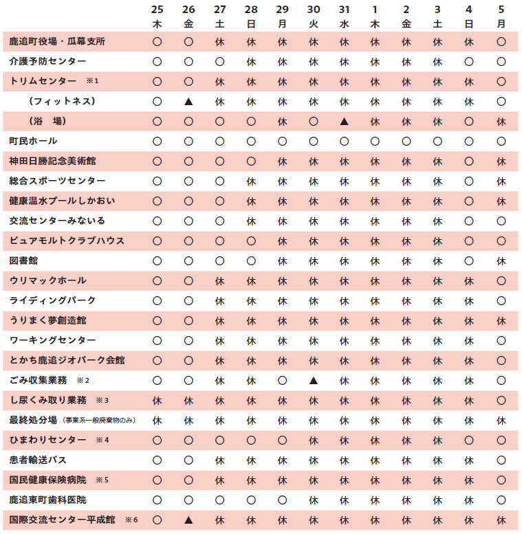 ※2 行政区の生ごみ収集曜日が火曜日地区の方は12月30日(火)が生ごみの臨時収集日です。朝8時までにごみステーションに排出してください。