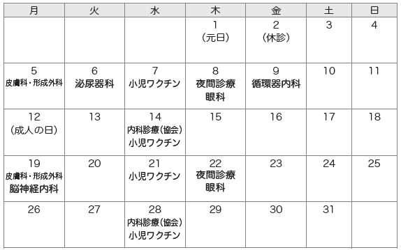 (1)内科・外科の医師は院外診療で不在になる場合があります。