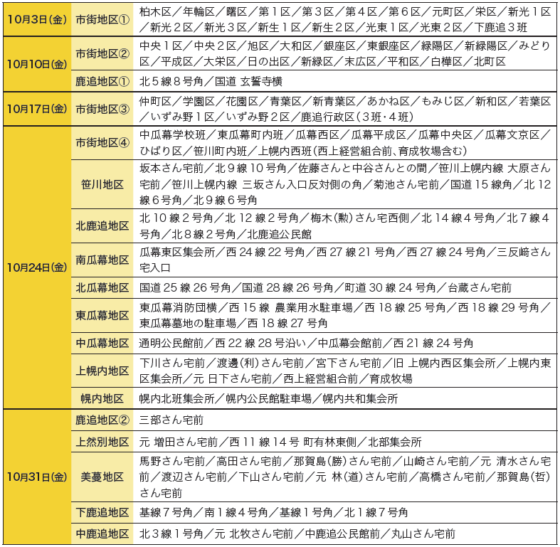 ◆下記の場所にごみステーションが設置されている場合は、ごみステーション前へ捨ててください