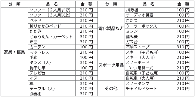 ・大型ごみの収集は有料です。大型ごみ排出料金の目安表(左ページ下)を参考に指定シールを貼って排出して下さい。指定シールを貼っていない大型ごみは収集しませんのでご注意ください。