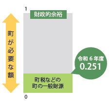 地方公共団体の財政力を示すもので、必要額に対し、町税などの一般財源収入額がどの程度確保されているかを表しています。「1」に近いほど財源に余裕があります。