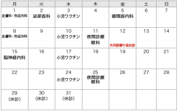 (1)内科・外科の医師は院外診療で不在になる場合があります。