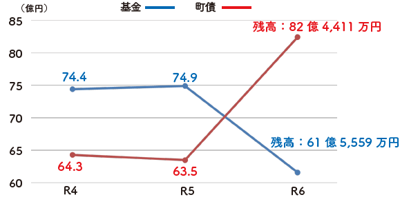 ◆基金(貯金)、町債(借金)の状況
