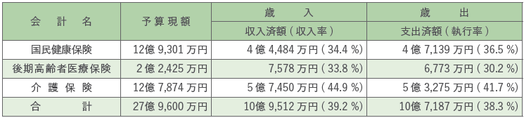特別会計は、国民健康保険など、一般会計と区別して管理する会計です。執行状況は、表3のとおりです。