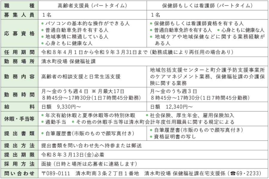 ■令和8年度 清水町会計年度任用職員募集(高齢者支援員・保健師もしくは看護師)