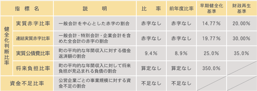 「地方公共団体の財政の健全化に関する法律」の規定に基づき、令和6年度決算の健全化判断比率などを公表します。清水町は赤字がなく、財政上のイエローカードを示す早期健全化基準を下回っています。