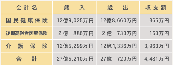 特別会計は、国民健康保険や後期高齢者医療保険など、一般会計と区別して管理する会計です。下表のとおり、特別会計に赤字はありませんでした。