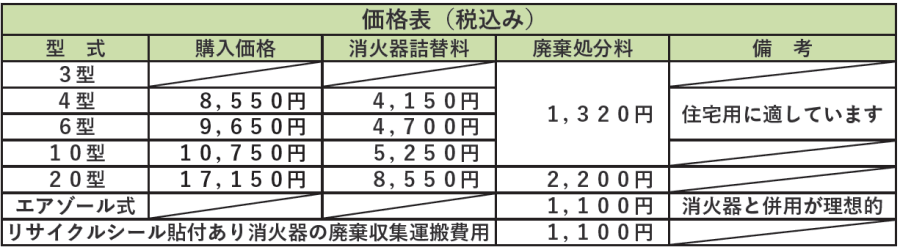 ・上記の購入斡旋消火器はリサイクル料込みの価格です。