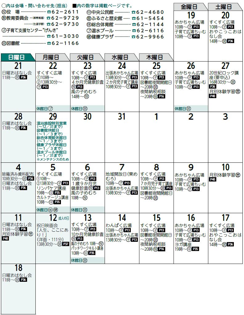くらし 12月19日→1月18日すまいるカレンダー 58/59 前の記事 次の記事 発行日 : 2025年12月12日 自治体名 : 北海道芽室町 広報紙名 : すまいる 令和7年12月号 Tweet シェアする 各施設の休館・休業日 その他のお知らせ(すまいる 令和7年12月号)