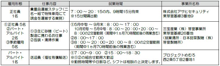※賃金などの詳細は、芽室町無料職業紹介所までお気軽にお問い合せください。