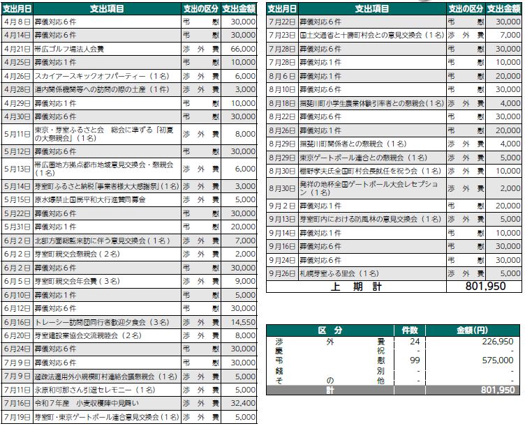 ※弔慰費について…各種行政委員を務められた方々は、それぞれの立場において本町行政に特にご尽力いただいたという理由で、異なる弔慰額になっています。