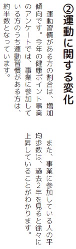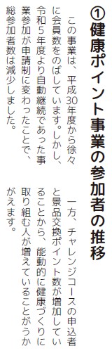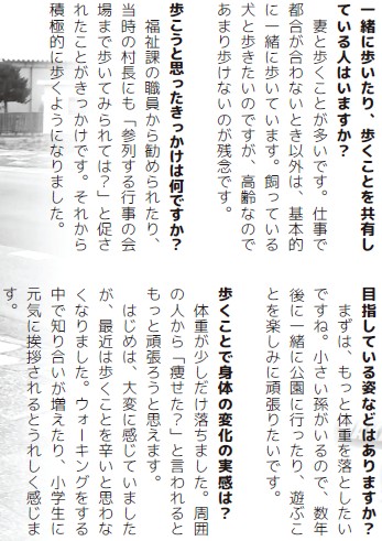 この特集では、健康ポイント事業の現在と、見えてきた効果をお知らせします。村では、今後も皆さんの健康づくり施策について、参加者の方の声をよりしっかりと取り入れていきたいと思います。