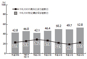 ◇特定健診受診者割合と受診者中の高血圧該当者の割合