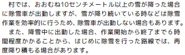 除雪車は、駐車車両を傷つけないように除雪を行うため、除雪作業に余分な時間がかかってしまいます。また、駐車車両を避けて除雪をするため、道路に雪が残り、再度除雪作業を行わなければなりません。