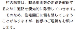 皆さんが利用する道路の交通を確保するための除雪作業は重要なものです。除雪作業を安全に素早く行うために、皆さんのご理解、ご協力をお願いします。