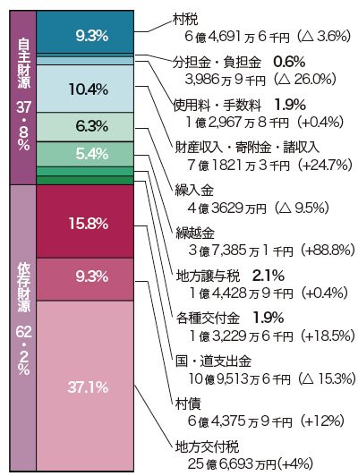 歳入総額は69億2722万7千円で、前年度比2億2696万4千円、3.4%の増となりました。