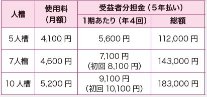 費用:右の表のとおり、使用料のほか、受益者分担金の支払いが必要となります。
