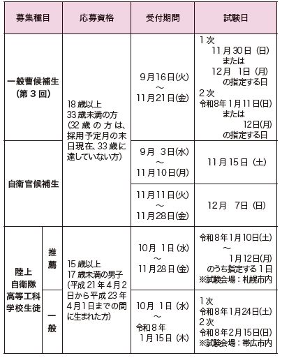 しごと 村からのお知らせ〔募集〕 19/29 前の記事 次の記事 発行日 : 2025年11月10日 自治体名 : 北海道更別村 広報紙名 : 広報さらべつ 令和7年11月号 ◆自衛官の募集のお知らせ 問合せ:自衛隊帯広募集案内所(帯広市西5条南14丁目13 NCサウスビル) 【電話】23-8718【E-mail】[email protected] Tweet シェアする 特設人権相談所を開設します 村からのお知らせ〔国民年金〕