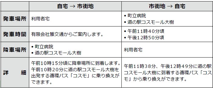 対象行政区の方々は、町内のお買い物や通院にぜひ、ご利用ください!