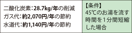 →家族4人が4分ずつシャワーを使うと、浴槽1杯分とほぼ同じ量のお湯になる