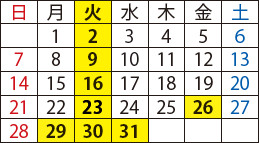 年末年始の休館:12月29日(月)~1月3日(土)