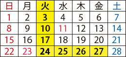 ※24日(火)は通常の休館日、27日(金)は月末休館日です。
