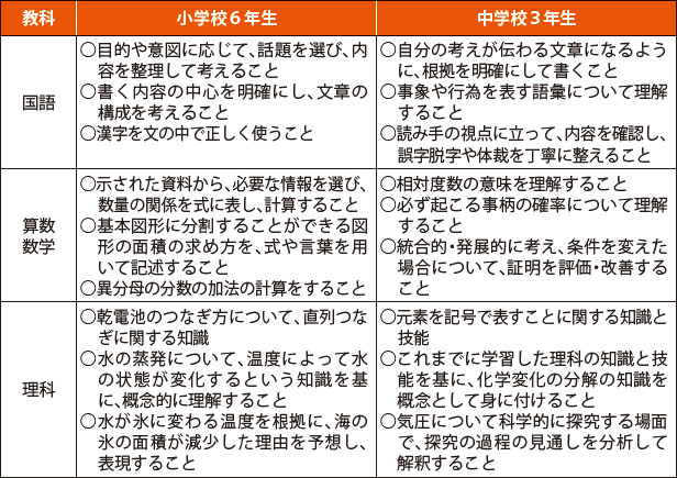 この調査では、国語と算数(数学)が毎年度、理科と英語(中学校のみ)が3年に1度の調査となっています。
