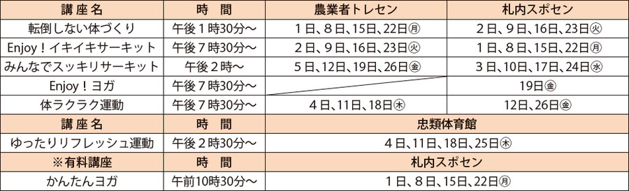 ※かんたんヨガ…1回1,000円(保険代込み)。町内に在住か勤務している方は、証明できるものを持参で100円引き。