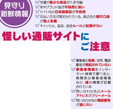 ・ブランド品や入手困難な米などが安く買えるなど、通販サイトを見て注文し代金を払ったのに商品が届かないなどの相談が寄せられています。少しでも怪しいと感じたら利用はやめましょう。
