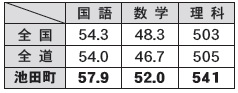 中学生は、国語で3.6ポイント、数学で3.7ポイント全国平均を上回り、理科のIRTスコア(※)では38ポイント全国を上回る結果となりました。