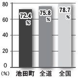 「自分にはよいところがあると思う」は44.8%で全国平均を4.1ポイント上回り、改善の傾向が伺えます。「勉強を平日1日1時間以上する(学習塾などを含む)」は41.4%で全国平均を20.2ポイント下回り、全国との大きな差が見られます。「朝食を毎日食べている」は72.4%で全国平均を6.3ポイント下回っています。