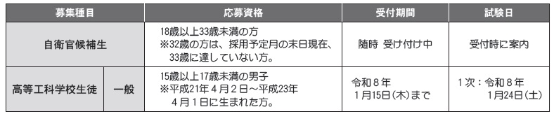 ※応募資格の年齢は、採用時期によって異なります。なお、受付期間や試験日は、状況により変更になる場合があります。