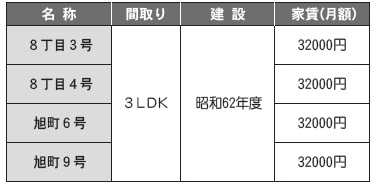 対象:町税などの滞納がなく、収入基準に該当する方その他、住宅により入居条件があります