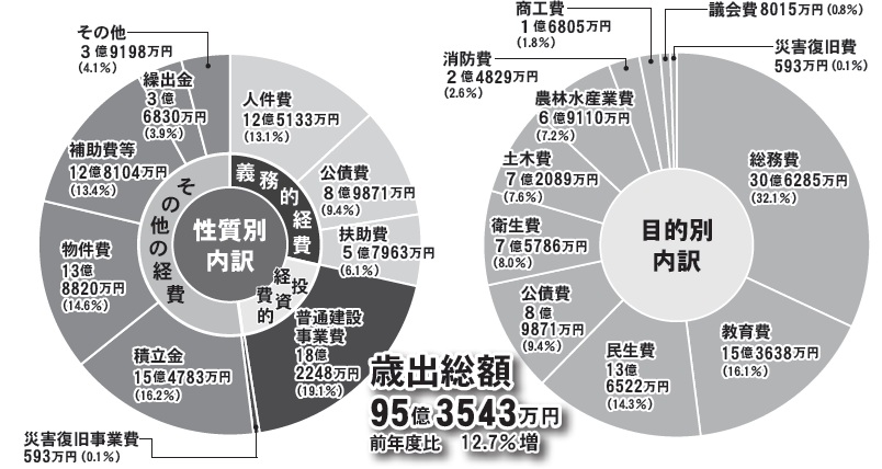 ・総務費:町の全般的な管理などの経費や戸籍、選挙、統計業務などに必要な経費