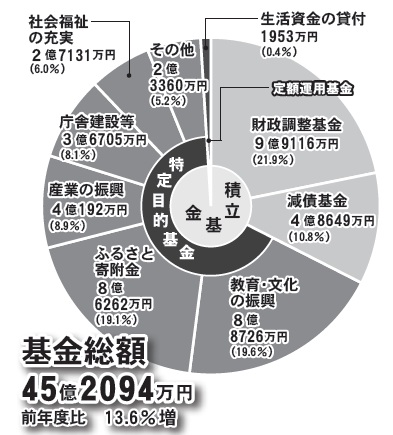 ・特定目的基金:ふるさと寄附金を活用したまちづくりの推進、教育・文化の振興、産業の振興、社会福祉の充実など、特定の目的の事業に充てるための預金