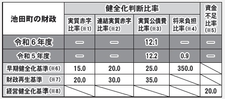地方公共団体の財政の健全化に関する法律に基づき、令和6年度決算による池田町の財政の「健全化判断比率」および「資金不足比率」を公表します。
