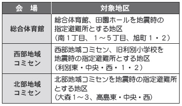 ※対象地区以外の町民の皆さんも「地域防災訓練」に参加できます。参加を希望する方は、9時に地震が発生したと想定して、会場に直接お越しください。