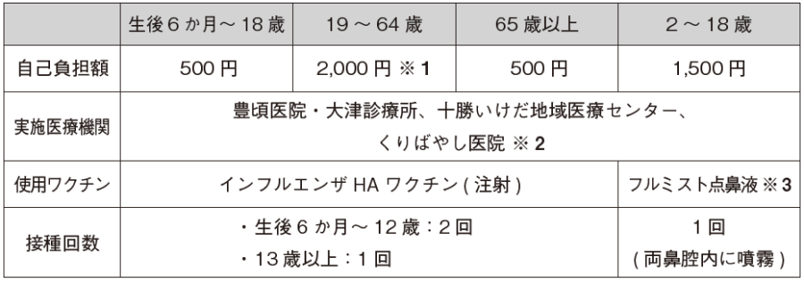 ※2 くりばやし医院はインフルエンザHAワクチン(注射)のみです。